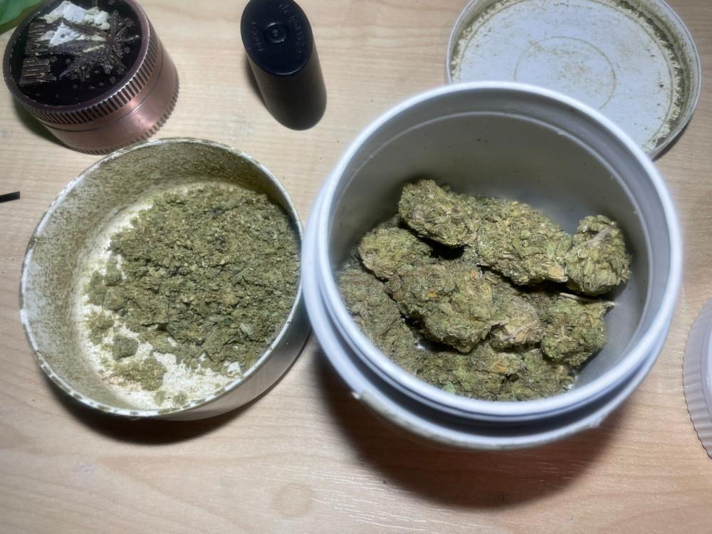 W trakcie rozmowy mężczyzna początkowo nie przyznawał się do posiadania jakichkolwiek substancji zabronionych. W związku z uzasadnionym podejrzeniem policjanci podjęli dalsze czynności. Podczas sprawdzenia pojazdu, w bagażniku samochodu, funkcjonariusze ujawnili dwa pojemniki z zawartością suszu roślinnego.