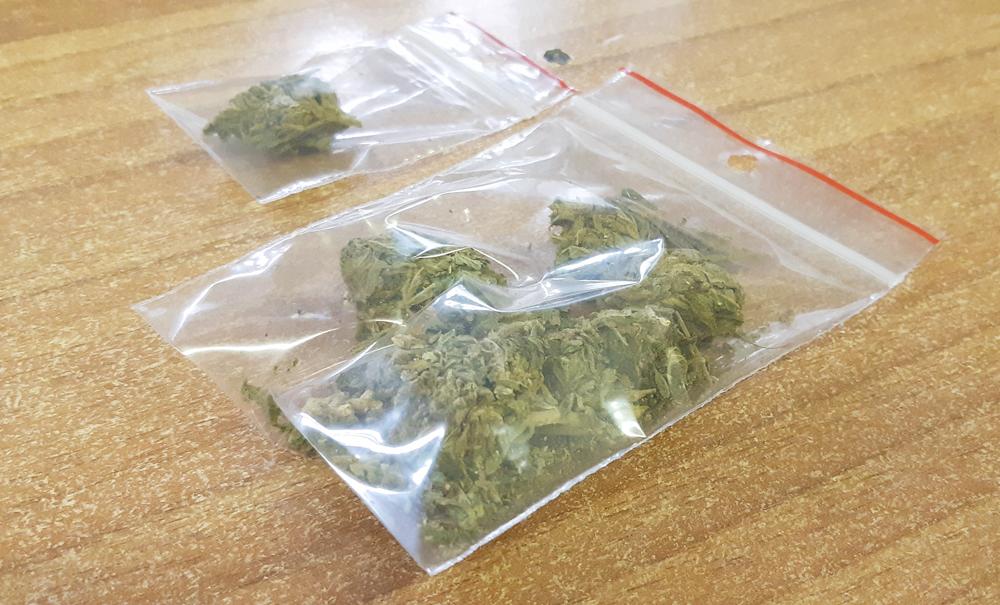 Podczas legitymowania sprawcy wykroczenia funkcjonariusze zwrócili uwagę na nerwowe zachowanie 25–latka. Mundurowi ujawnili przy nim saszetkę, w której znajdowały się woreczki z suszem roślinnym koloru brunatno-zielonego oraz młynek do mielenia. W trakcie dalszych czynności zabezpieczono także blister z tabletkami białego koloru, które – jak oświadczył zatrzymany – miały być środkiem psychotropowym.