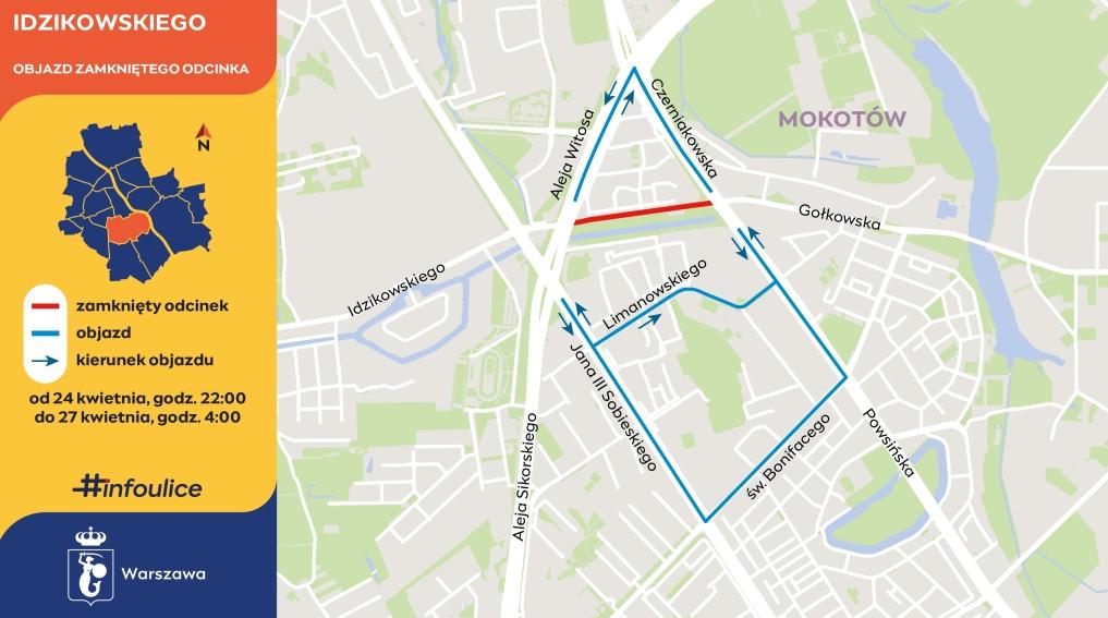 Drogowcy uwiną się w 54 godziny. Roboty rozpoczną w piątek, 24 kwietnia, o godzinie 22:00, a zakończą w poniedziałek, 27 kwietnia, o godzinie 4:00 na Mokotowie.